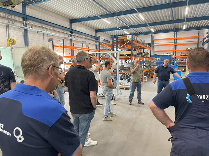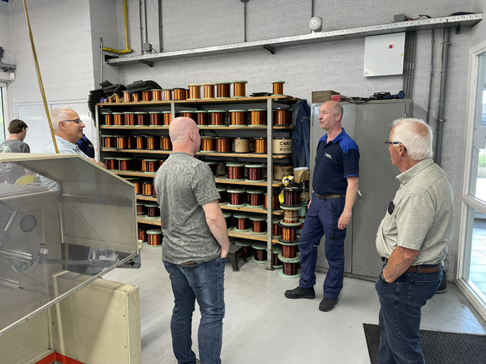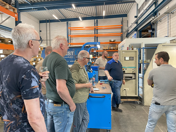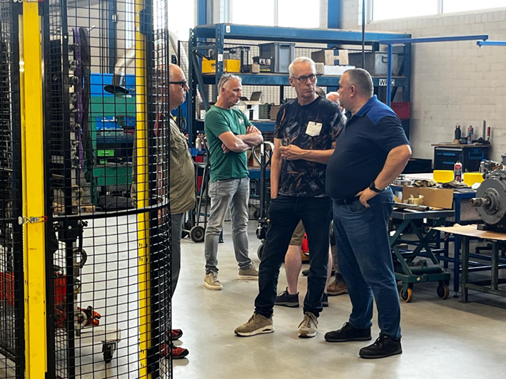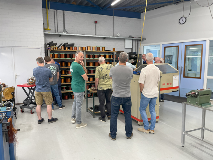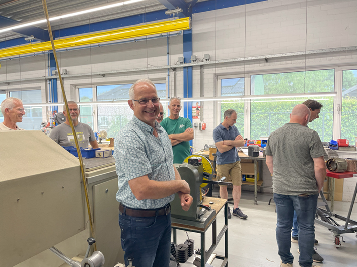 Eigenaar Rob van Zelst ging in zijn presentatie dieper in op de geschiedenis, achtergronden en mogelijkheden van Van Zelst Aandrijftechniek. Hoe ons bedrijf – in 1966 opgericht door vader Albert en moeder Janny als ‘Electr. techn. reparatiebedrijf Van Zelst’ – zich steeds heeft aangepast aan de eisen en wensen van de tijd. Nieuwe branches brachten nieuwe technieken met zich mee. Aandrijftechniek gaat immers om veel meer dan elektromotoren alleen. We onderhouden, repareren, reviseren en leveren bijvoorbeeld pompen, schakelkasten, frequentieregelaars, ventilatoren en nog veel meer. De bezoekers kregen tijdens hun rondleiding bij de machines uitleg over wikkelen, balanceren, trillingsmetingen en vlamspuiten bijvoorbeeld. We namen hen mee langs onze uitgebreide voorraden reservemotoren en occasions en konden hen meer vertellen over het bijzondere technische ambacht van ons team.
